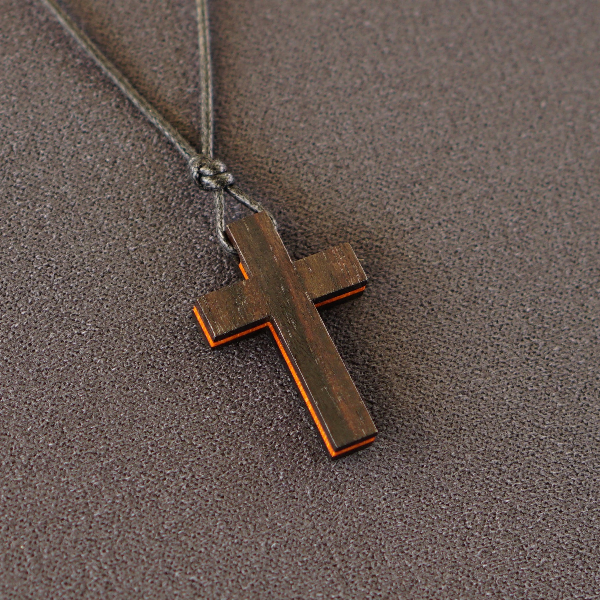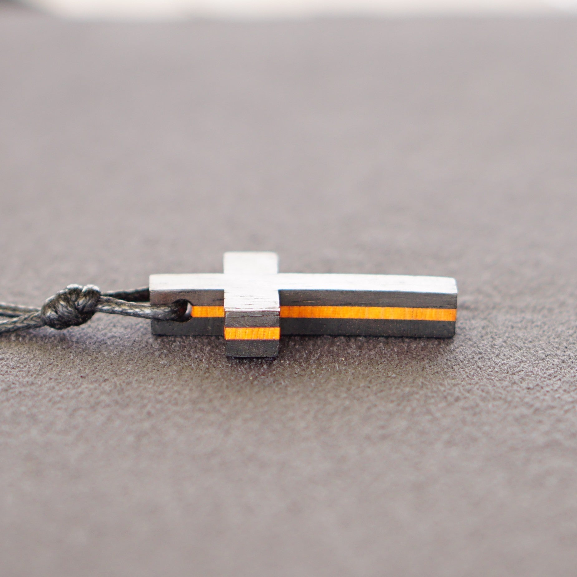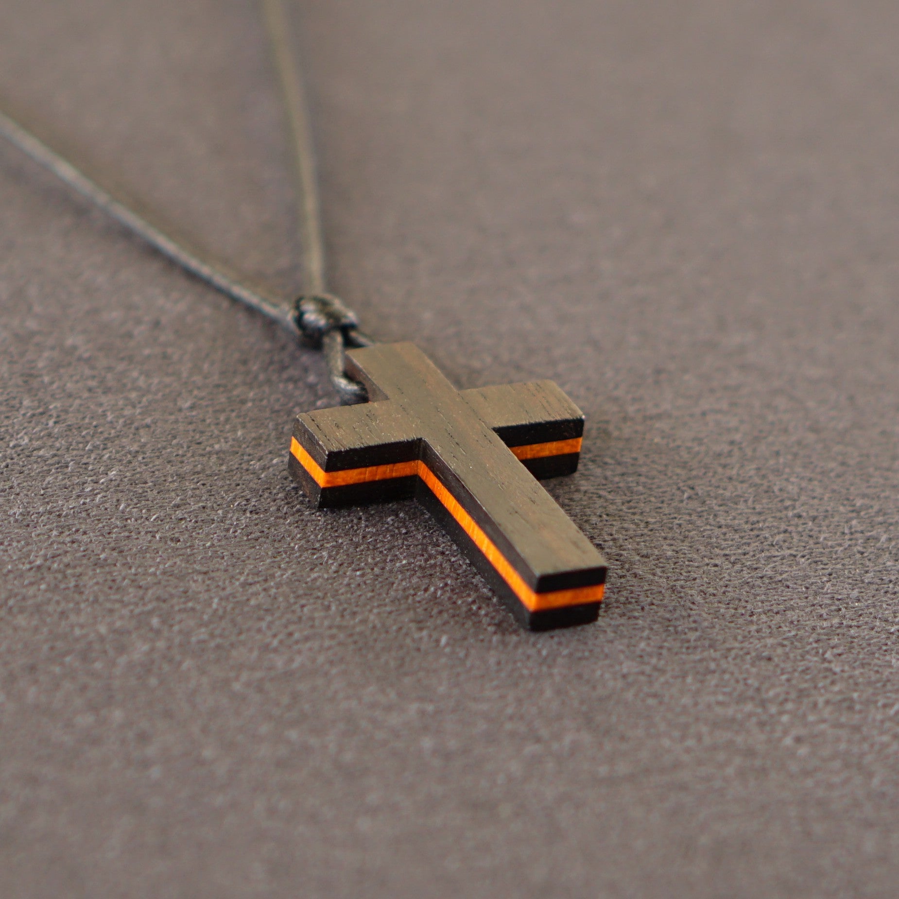 三枚の銘木を使い、インナーカラーをあしらった寄木のペンダントです。アイテム名の由来はデザインとしても普及している十字架ですが、古今東西考えや人出会いの架け橋として存在して来たと感じ、その歴史に敬意を込めて名付けました。季節ごとのイベントで人気の十字架モチーフ。使い方はあなた次第。